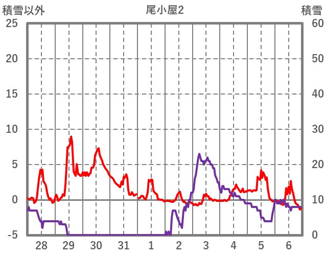 | 日 | 時 | 気温 | 降水 | 風向/風速 | 日照 | 積雪 | 降雪 |