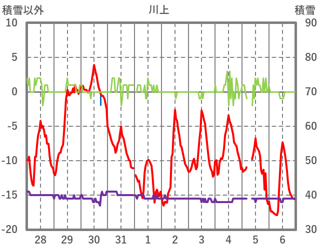 | 日 | 時 | 気温 | 降水 | 風向/風速 | 日照 | 積雪 | 降雪 |