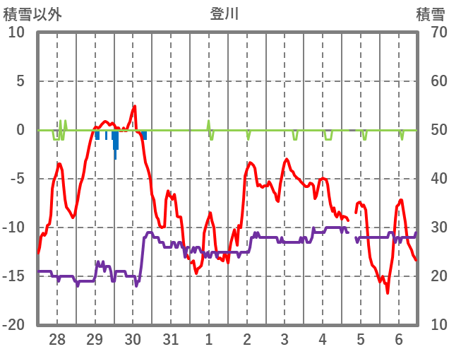 | 日 | 時 | 気温 | 降水 | 風向/風速 | 日照 | 積雪 | 降雪 |