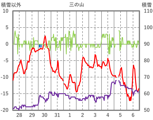 | 日 | 時 | 気温 | 降水 | 風向/風速 | 日照 | 積雪 | 降雪 |