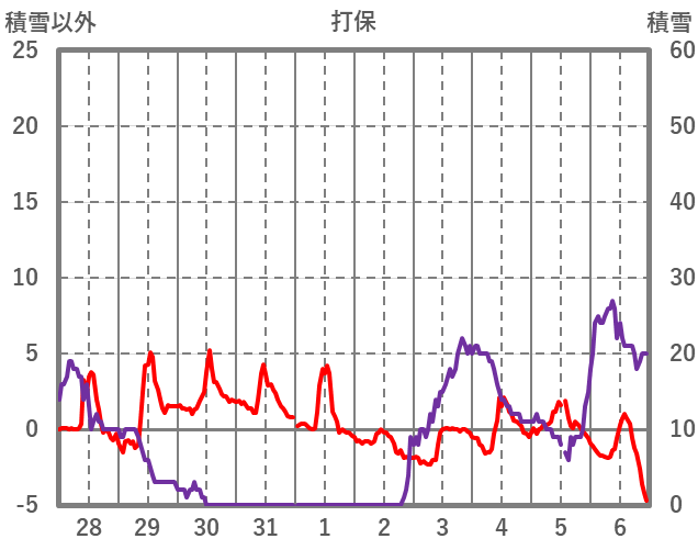| 日 | 時 | 気温 | 降水 | 風向/風速 | 日照 | 積雪 | 降雪 |