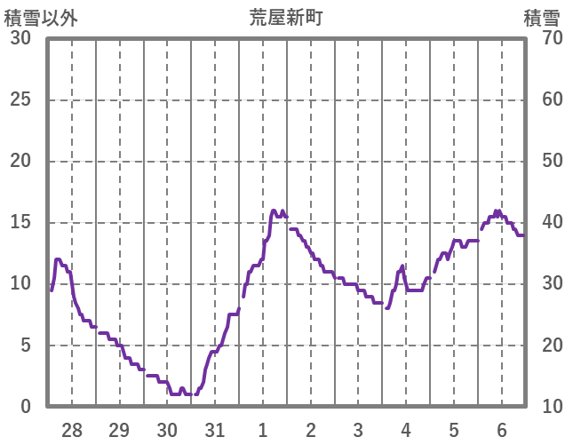 | 日 | 時 | 気温 | 降水 | 風向/風速 | 日照 | 積雪 | 降雪 |