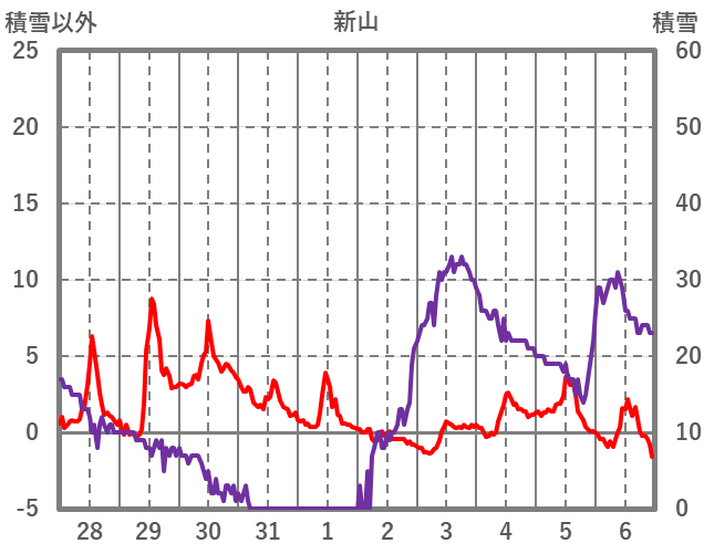 | 日 | 時 | 気温 | 降水 | 風向/風速 | 日照 | 積雪 | 降雪 |