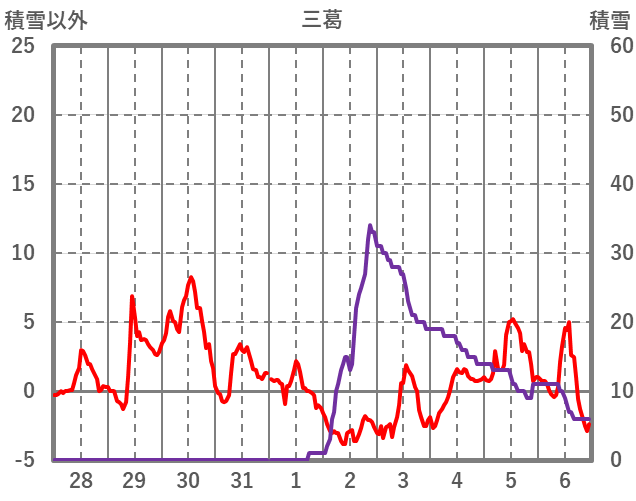 | 日 | 時 | 気温 | 降水 | 風向/風速 | 日照 | 積雪 | 降雪 |