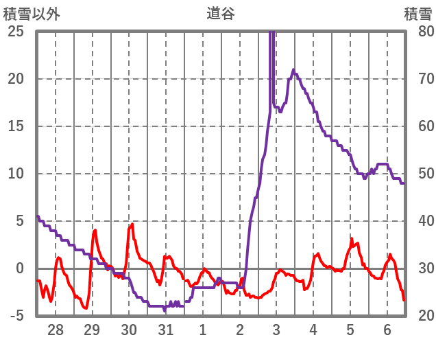 | 日 | 時 | 気温 | 降水 | 風向/風速 | 日照 | 積雪 | 降雪 |