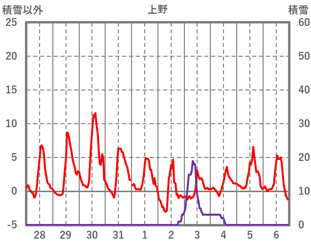 | 日 | 時 | 気温 | 降水 | 風向/風速 | 日照 | 積雪 | 降雪 |