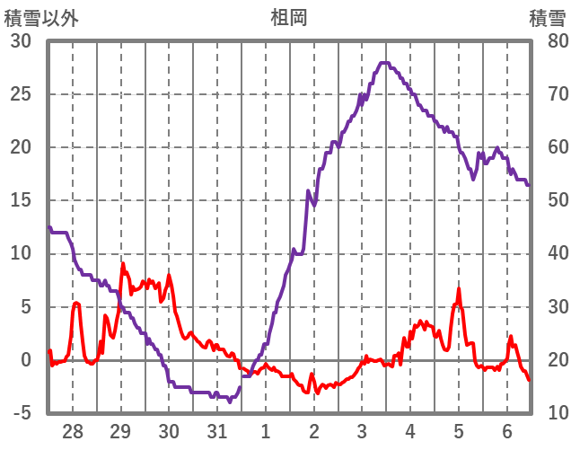 | 日 | 時 | 気温 | 降水 | 風向/風速 | 日照 | 積雪 | 降雪 |