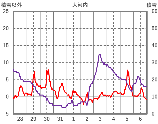 | 日 | 時 | 気温 | 降水 | 風向/風速 | 日照 | 積雪 | 降雪 |