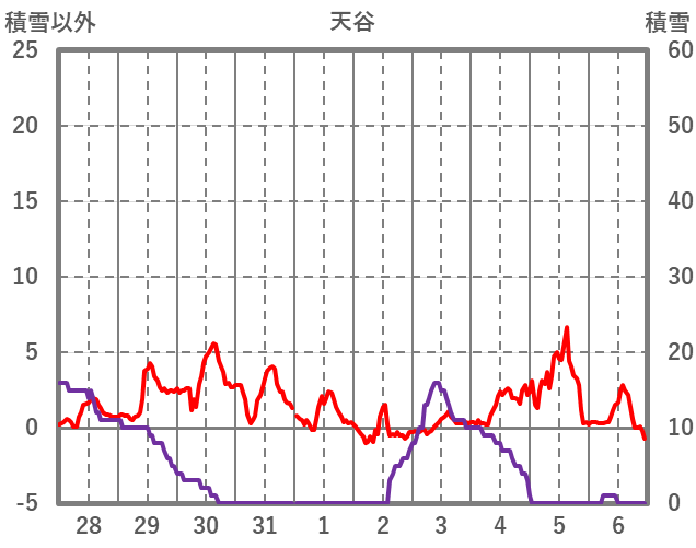 | 日 | 時 | 気温 | 降水 | 風向/風速 | 日照 | 積雪 | 降雪 |
