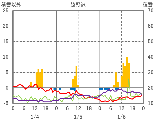 | 日 | 時 | 気温 | 降水 | 風向/風速 | 日照 | 積雪 | 降雪 |