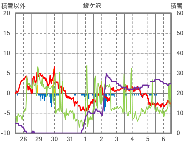 | 日 | 時 | 気温 | 降水 | 風向/風速 | 日照 | 積雪 | 降雪 |