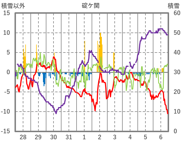 | 日 | 時 | 気温 | 降水 | 風向/風速 | 日照 | 積雪 | 降雪 |