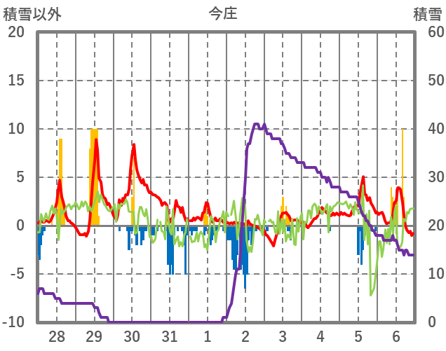 | 日 | 時 | 気温 | 降水 | 風向/風速 | 日照 | 積雪 | 降雪 |