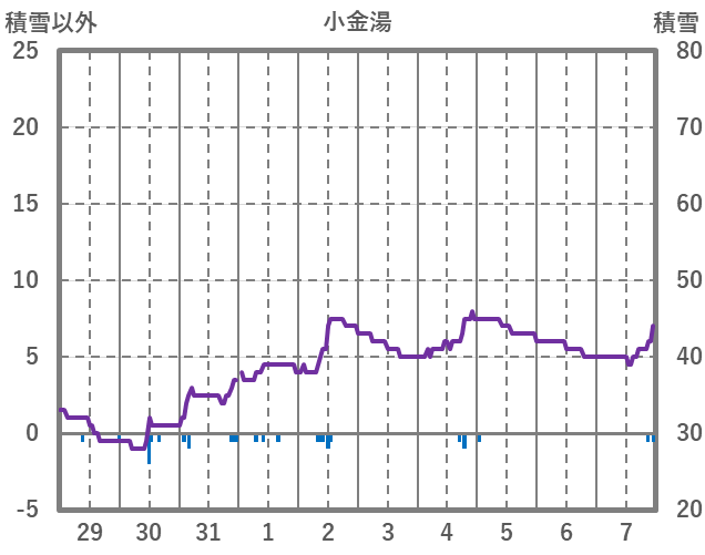 | 日 | 時 | 気温 | 降水 | 風向/風速 | 日照 | 積雪 | 降雪 |