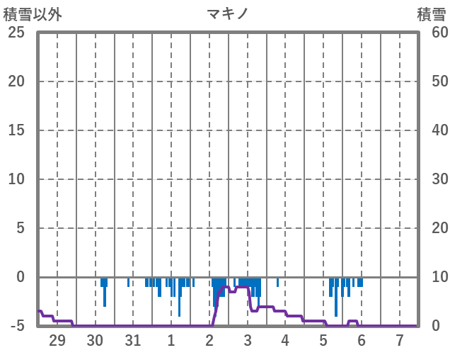 | 日 | 時 | 気温 | 降水 | 風向/風速 | 日照 | 積雪 | 降雪 |