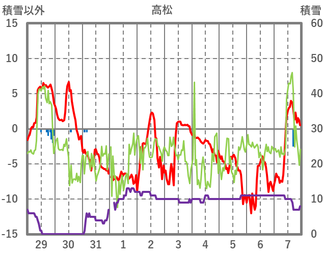 | 日 | 時 | 気温 | 降水 | 風向/風速 | 日照 | 積雪 | 降雪 |