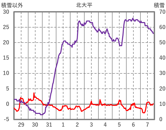 | 日 | 時 | 気温 | 降水 | 風向/風速 | 日照 | 積雪 | 降雪 |