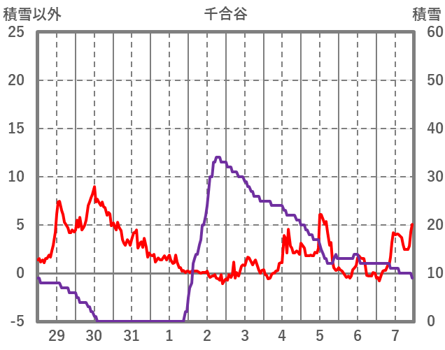 | 日 | 時 | 気温 | 降水 | 風向/風速 | 日照 | 積雪 | 降雪 |