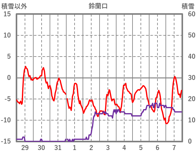 | 日 | 時 | 気温 | 降水 | 風向/風速 | 日照 | 積雪 | 降雪 |