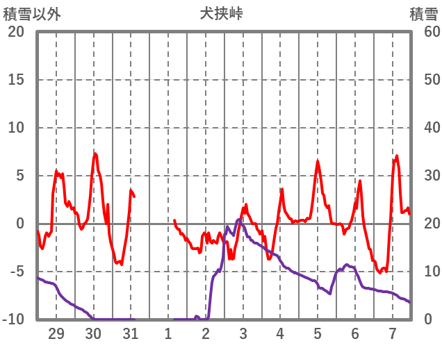 | 日 | 時 | 気温 | 降水 | 風向/風速 | 日照 | 積雪 | 降雪 |