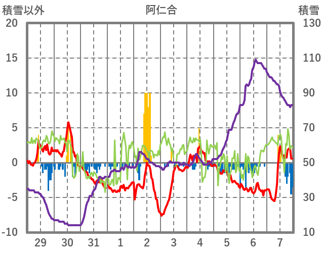 | 日 | 時 | 気温 | 降水 | 風向/風速 | 日照 | 積雪 | 降雪 |