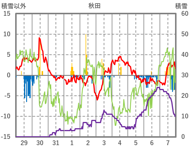 | 日 | 時 | 気温 | 降水 | 風向/風速 | 日照 | 積雪 | 降雪 |