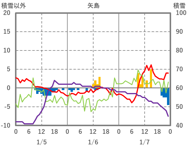 | 日 | 時 | 気温 | 降水 | 風向/風速 | 日照 | 積雪 | 降雪 |