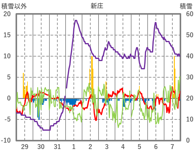 | 日 | 時 | 気温 | 降水 | 風向/風速 | 日照 | 積雪 | 降雪 |