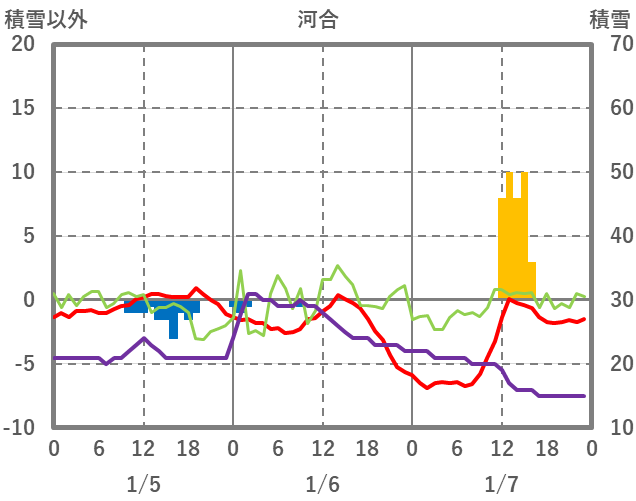 | 日 | 時 | 気温 | 降水 | 風向/風速 | 日照 | 積雪 | 降雪 |