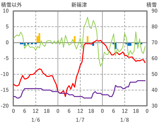 | 日 | 時 | 気温 | 降水 | 風向/風速 | 日照 | 積雪 | 降雪 |