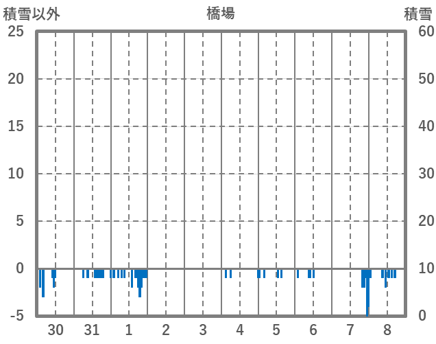 | 日 | 時 | 気温 | 降水 | 風向/風速 | 日照 | 積雪 | 降雪 |