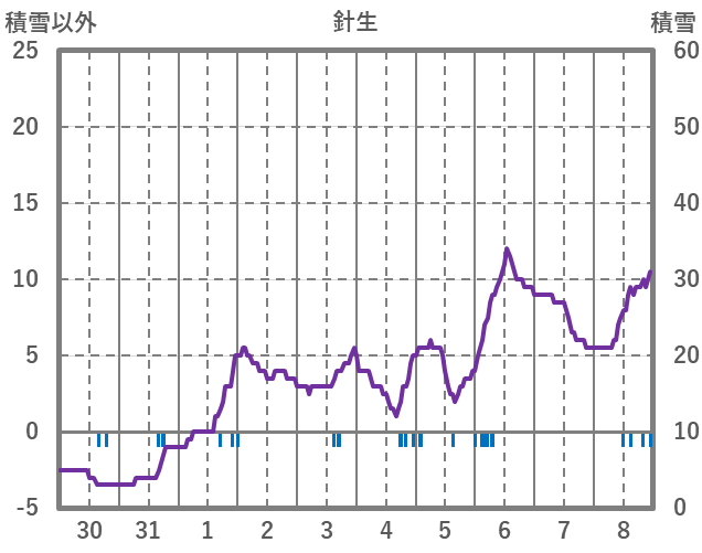 | 日 | 時 | 気温 | 降水 | 風向/風速 | 日照 | 積雪 | 降雪 |