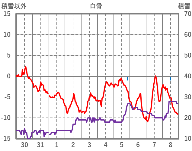 | 日 | 時 | 気温 | 降水 | 風向/風速 | 日照 | 積雪 | 降雪 |