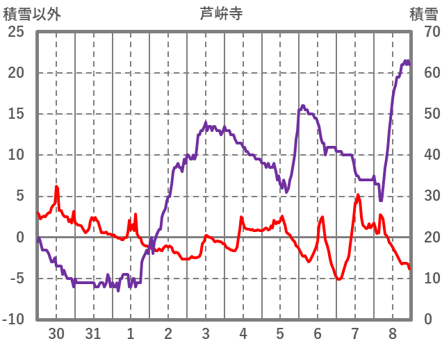 | 日 | 時 | 気温 | 降水 | 風向/風速 | 日照 | 積雪 | 降雪 |