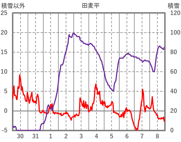 | 日 | 時 | 気温 | 降水 | 風向/風速 | 日照 | 積雪 | 降雪 |