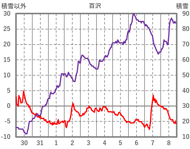 | 日 | 時 | 気温 | 降水 | 風向/風速 | 日照 | 積雪 | 降雪 |