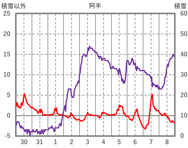 | 日 | 時 | 気温 | 降水 | 風向/風速 | 日照 | 積雪 | 降雪 |