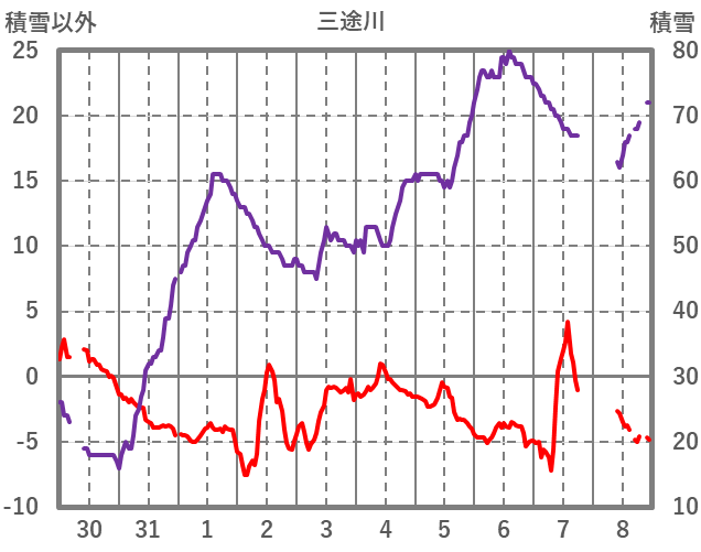 | 日 | 時 | 気温 | 降水 | 風向/風速 | 日照 | 積雪 | 降雪 |