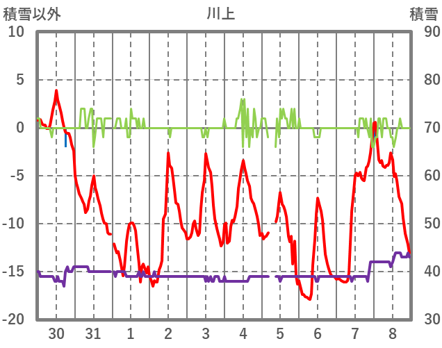 | 日 | 時 | 気温 | 降水 | 風向/風速 | 日照 | 積雪 | 降雪 |