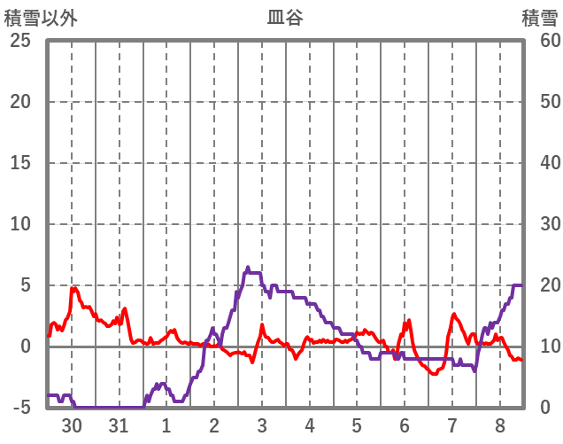 | 日 | 時 | 気温 | 降水 | 風向/風速 | 日照 | 積雪 | 降雪 |