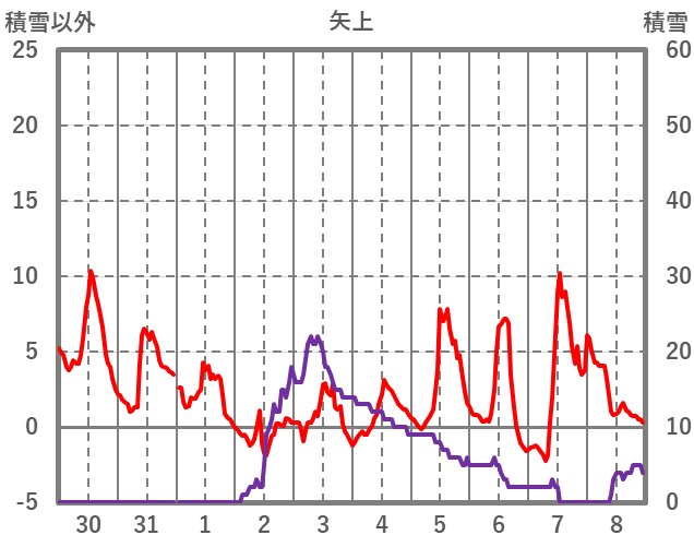| 日 | 時 | 気温 | 降水 | 風向/風速 | 日照 | 積雪 | 降雪 |
