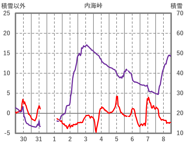 | 日 | 時 | 気温 | 降水 | 風向/風速 | 日照 | 積雪 | 降雪 |