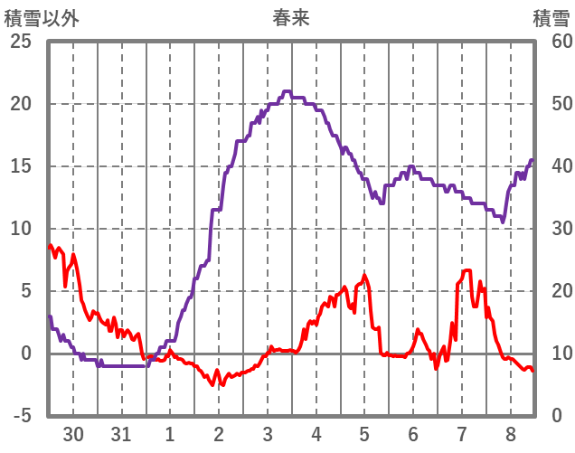 | 日 | 時 | 気温 | 降水 | 風向/風速 | 日照 | 積雪 | 降雪 |