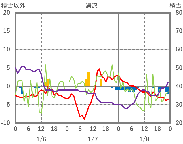 | 日 | 時 | 気温 | 降水 | 風向/風速 | 日照 | 積雪 | 降雪 |