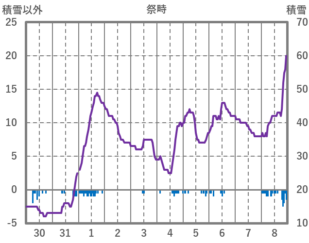 | 日 | 時 | 気温 | 降水 | 風向/風速 | 日照 | 積雪 | 降雪 |