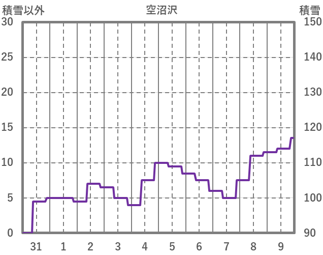 | 日 | 時 | 気温 | 降水 | 風向/風速 | 日照 | 積雪 | 降雪 |