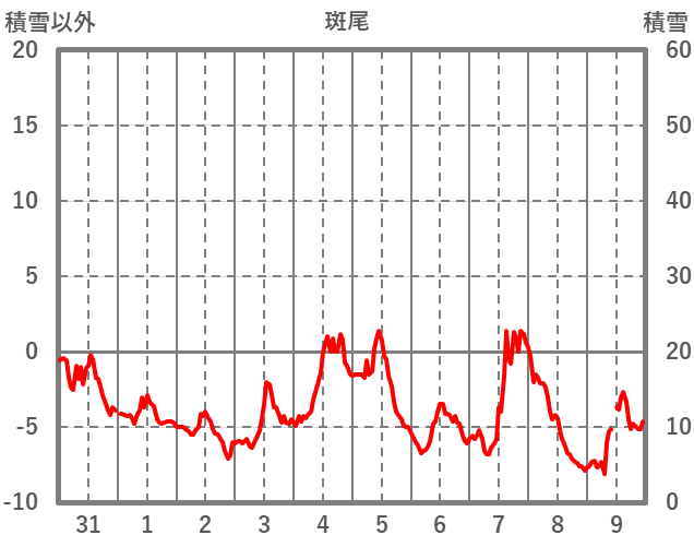 | 日 | 時 | 気温 | 降水 | 風向/風速 | 日照 | 積雪 | 降雪 |