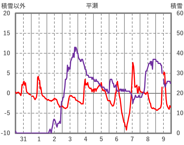 | 日 | 時 | 気温 | 降水 | 風向/風速 | 日照 | 積雪 | 降雪 |