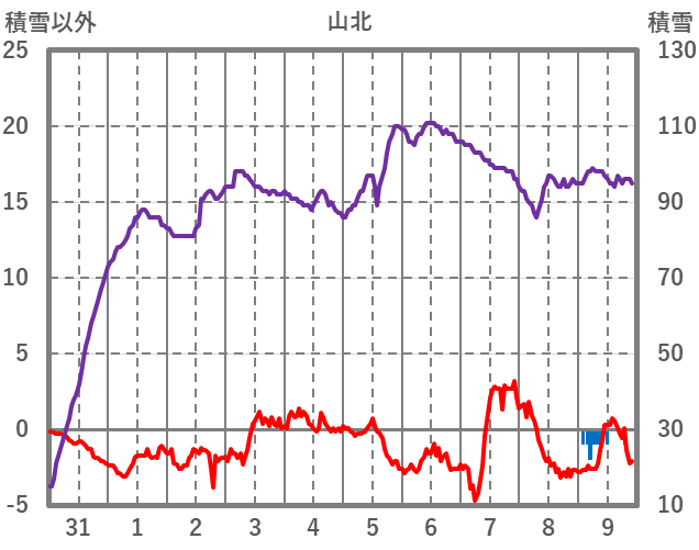 | 日 | 時 | 気温 | 降水 | 風向/風速 | 日照 | 積雪 | 降雪 |