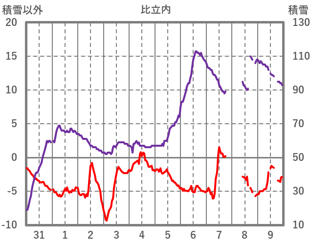 | 日 | 時 | 気温 | 降水 | 風向/風速 | 日照 | 積雪 | 降雪 |